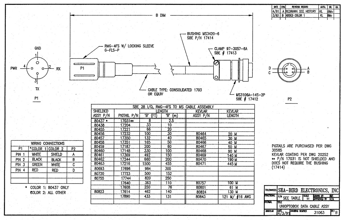 Drawing 31063: Unioptobox Data Cable Assembly