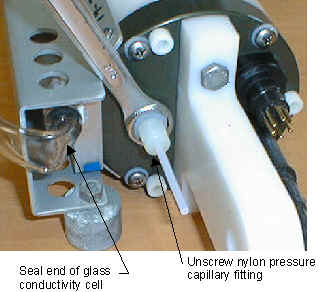 the end of the glass conductivity cell (using Tygon tubing or similar