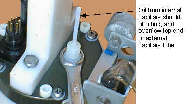external capillary tube. When the oil is not visible or is receding inside the
