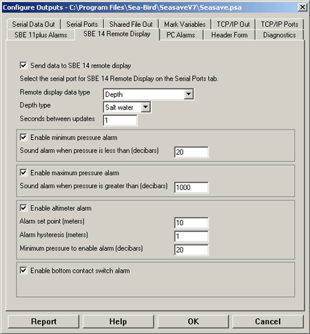 - Send data to SBE 14 remote display: Enable sending data to SBE 14, using serial port defined on Serial Ports tab.