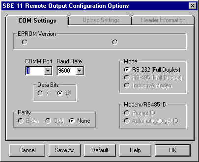 Enter the desired COM port and baud rate and click OK or Save As to save the settings when done.