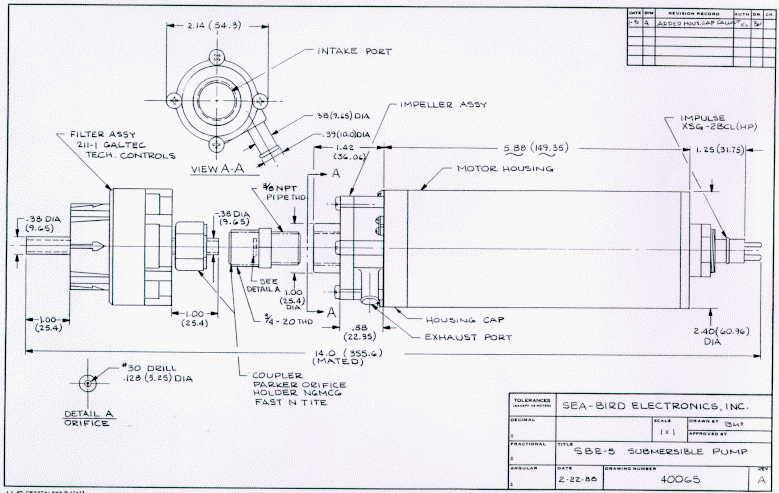 Drawing 40065 SBE 5 Submersible Pump (click on thumbnail to view full size drawing):