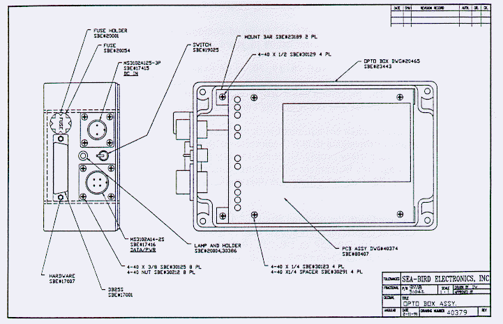 The Sea-Bird Electronics DC Opto-Isolated Junction Box is a multi-purpose accessory that provides a convenient power and/or data interface between many Sea-Bird instruments and the user's computer serial port. The junction box is DC powered (10 to 35 VDC) and features optical data coupling and an isolated power supply to permit working without interference from shipboard power circuits and grounds. It can supply up to 2 amperes at +15 volts DC to power a SBE 16 or 19 and auxiliary sensors, SBE 21 Thermosalinograph, or SBE 26 / 26plus SEAGAUGE.