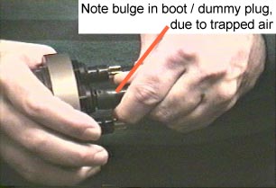 may note a bulge in the boot or dummy plug, which is due to trapped air.