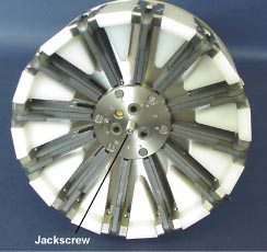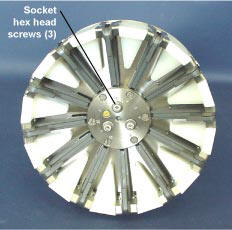 - Remove the Phillips-head screws (eight for 32C and 32SC, six for full-size 32). Lift the retainer disk from the top of the latch assembly. [Photo 3]
