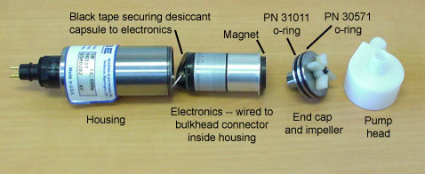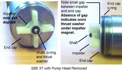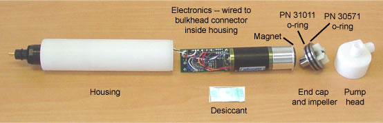 before cleaning the impeller. The end cap o-rings seal the electronics