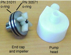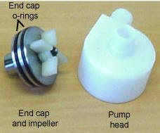 chamber. The end cap may walk out of the housing after the pump head is removed,