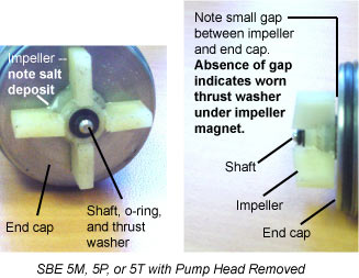 impeller for salt build-up, and clean if necessary. Inspect the magnet for
