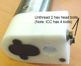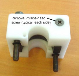 - Remove the 2 larger Phillip-head screws and carefully pull the clamp apart.
