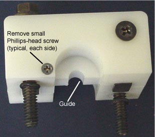 - Remove the two small Phillips-head screws securing the guide, and remove the guide.