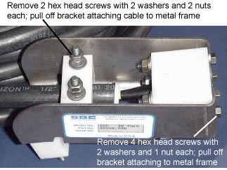- (Inductive Cable Coupler) Remove the core as shown in the photos below. Examine the ferrite core for cracks or chips; replace if necessary. Reinstall the core, plastic, screws, etc.
