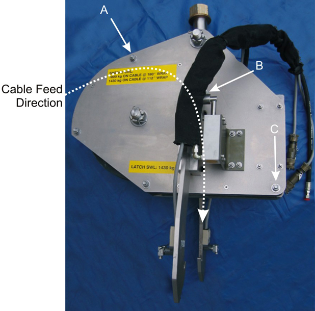 The load latch can be fitted to a metering sheave as well, providing cable scope and speed information to the operator, via a remote display unit or within Sea-Bird's Seasave software. The load latch and sheave combination would be an easy retrofit to a existing CTD handling setup, as it would replace the existing sheave.