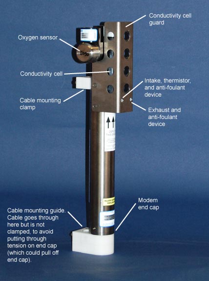 conductivity cell, thermistor, dissolved oxygen sensor, and anti-foulant devices |
