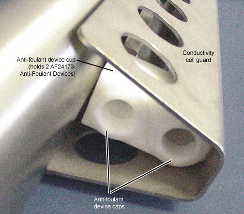 Conductivity cell guard, Anti-Foulant device cup, and Anti-Foulant
