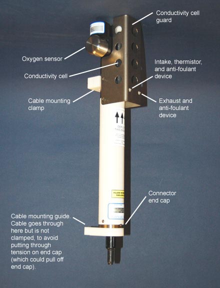 conductivity cell, thermistor, dissolved oxygen sensor, and anti-foulant devices |