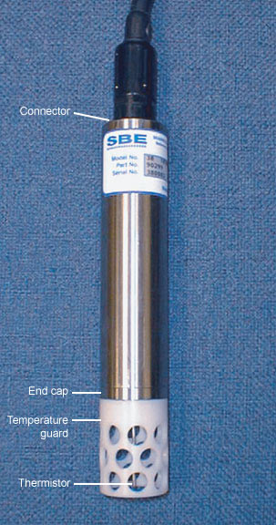 SBE 38 installed in PN 50244 External Temperature Mount Kit (for use with SBE 21 or SBE 45 Thermosalinograph)