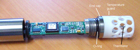 Electronics removed -- thermistor, temperature guard, end cap, o-ring