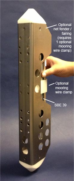 Overall view -- SBE 39, 1 optional mooring wire clamp, and optional fairing / net