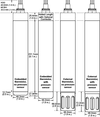 | Titanium housing, with thermistor in sheath * | 1.2 kg (2.6 lbs) | 0.7 kg (1.6 lbs) |