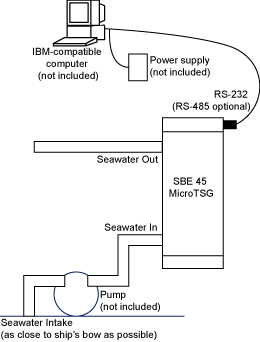 The MicroTSG retains the temperature and conductivity sensors used in the SBE 21 Thermosalinograph, but has improved acquisition electronics that increase accuracy and resolution, and lower power consumption. The MicroTSG’s aged and pressure-protected thermistor has a long history of exceptional accuracy and stability (typical drift is less than 0.002 °C per year). Electrical isolation of the conductivity electronics eliminates any possibility of ground-loop noise.