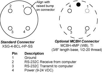 Connector (Standard XSG-4-BCL-HP-SS; optional MCBH-4MP (WB), TI [3/8 inch length base, 1/2-20 thread]):