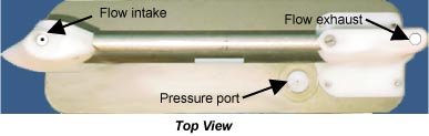 The intake sail allows measurements to be made outside of the vehicle’s boundary flow where old water is thermally contaminated as it is dragged to a different depth by the vehicle, producing TS errors. The pump pulls water into the duct at top of the intake sail and immediately past a temperature sensor. Water then flows through an anti-foulant cylinder, through the conductivity cell into the internal pump impeller, and out the top of the exhaust sail to prevent exhaust re-circulation and Bernoulli pressure differences from changing the flow rate. The outside of the conductivity cell is free-flushed. If the cell were located inside the flooded fairing, a thermal mass error resulting from temperature difference between the poorly-flushed volume inside the hull and the ambient ocean temperature measured by the CTD would produce salinity errors.