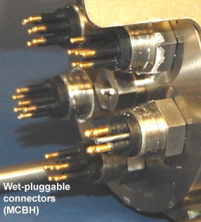 submerged. Wet-pluggable connectors have a non-conducting guide pin