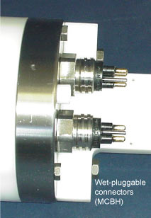 submerged. Wet-pluggable connectors have a non-conducting guide pin