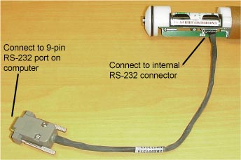- Attach the RS-232 cable (supplied by Sea-Bird with the original shipment of the 39-IM) to the internal RS-232 connector in the SBE 39-IM and to an RS-232 Com port on the computer.