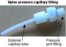 the end cap still facing up, insert the new nylon pressure capillary fitting