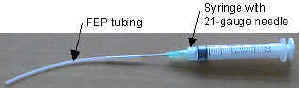 76 mm (3 inch) long FEP tubing (1/32 inch I.D; 1/16 inch O.D.), to place