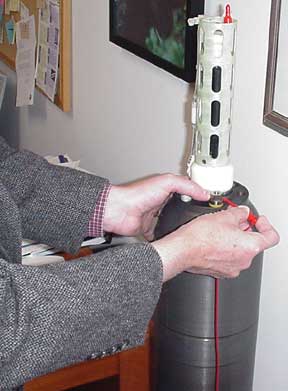 2. Then, grasp the float housing before touching the titanium pressure port. | |
