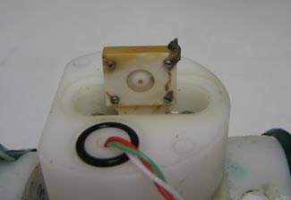 The SBE 43 DO sensor is flushed with a flow-controlled pump to deliver a fresh sample of ambient water to the sensor. For moored applications, the unique plumbing arrangement serves as a first line of defense against fouling, protecting the sensor from continuous exposure to external biological contamination (Figure 4). Pumping prior to each measurement flushes stagnant water out of the plumbing. Between measurements, anti-foulant placed at each end of the conductivity cell’s plumbed path diffuses into the stagnant water to neutralize any biota that enters the system during the previous flush. The flushing itself agitates and removes the neutralized biota from the sensor.