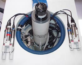 Eight SBE 43 sensors (in pumped pairs) are calibrated at one time in a computer-controlled bath. |