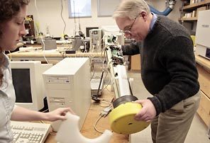 University of Washington oceanographer Steve Riser, shown here with graduate student Alison Rogers, helped design the network of 3,000 Argo floats. About 850 floats were built at the UW. |