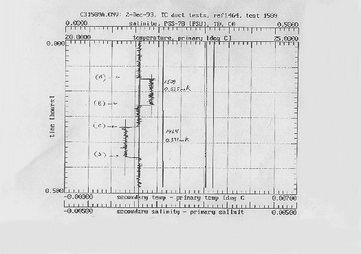 Laboratory measurements of temperature (and temperature difference) were made with the 'TC-ducted' configuration of Sea-Bird sensors used in the oceanographic application. (A schematic of the flow path is shown in Figure 21).