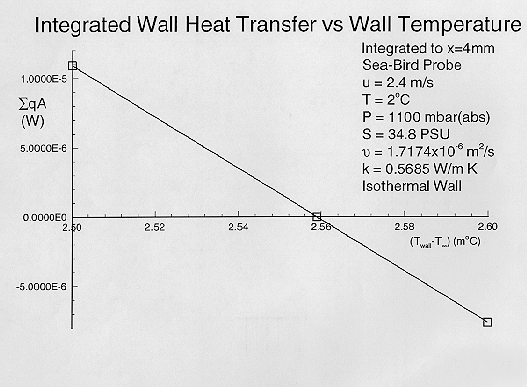 Following the approximations used in the axisymmetric flow runs the first computational approximation is an adiabatic probe wall. We would expect less tip temperature deviation from stem-loss in a real probe in this orientation because of the efficient local heating source along the entire length of the probe. Again, this approximation does define the water skin temperature 'forcing function' to the probe sheath.