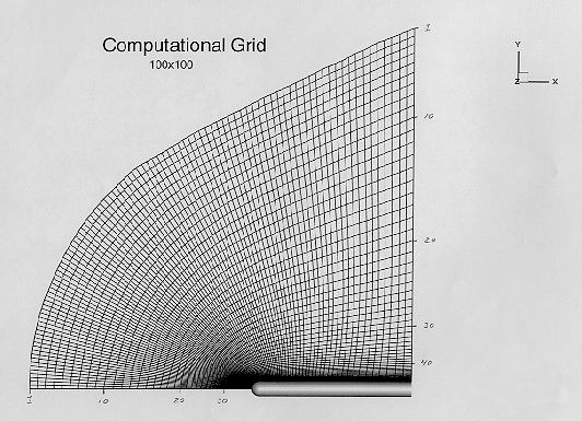 100 x 100 computational grid on a half-plane through the probe diameter