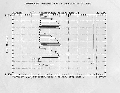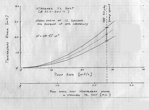Using two pairs of ducted sensors the temperature of a stable bath could be measured by two temperature sensors and the temperature difference measured as the flow in one duct was reduced in successive increments toward zero (Figure 22).