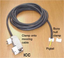 | ICC4-7b | Inductive Cable Coupler (Version 4, 100-turn) for 10 mm diameter mooring wire, with pigtail cable up to 10 m long (no connectors). Specify cable length. Includes reinforced cable conduit & buoy mounted conduit clamp. (Consult factory for connector availability) | |||||||||||||||||||||